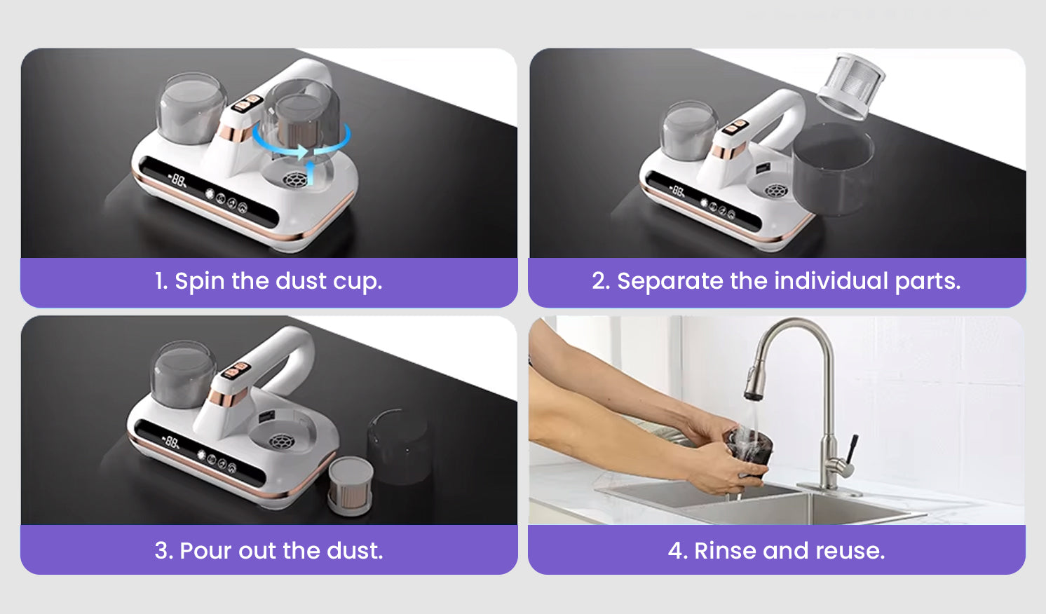 Utilize advanced 253.7nm UV-C light, physics-based ultrasound, high-frequency tapping, and hurricane suction in a 5-in-1 system. Enjoy a superior mattress cleaning experience that promotes a comprehensive and healthy home environment.